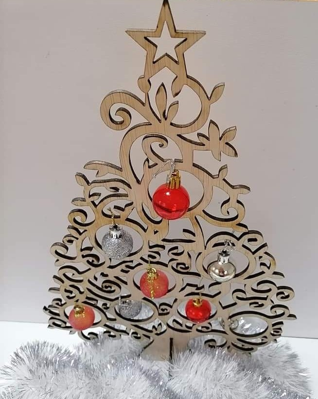 Brad decorativ din lemn inalţime aproximativ 200mm  globurile nu sunt incluse  sunt doar cu titlu de prezentare