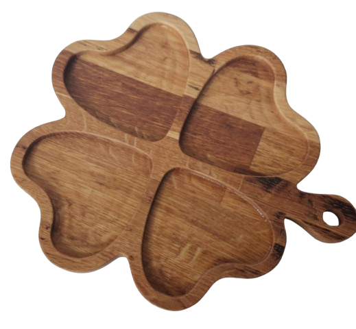 Asociaţia Raul Cosmin Platou din lemn de stejar model trifoi cu 4 locașe