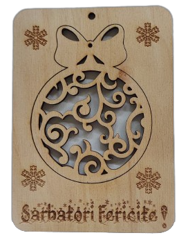 Felicitare  din placaj cu Glob model - Glob cu decupaj detașabil cu dimensiunea de 100 x 140 mm