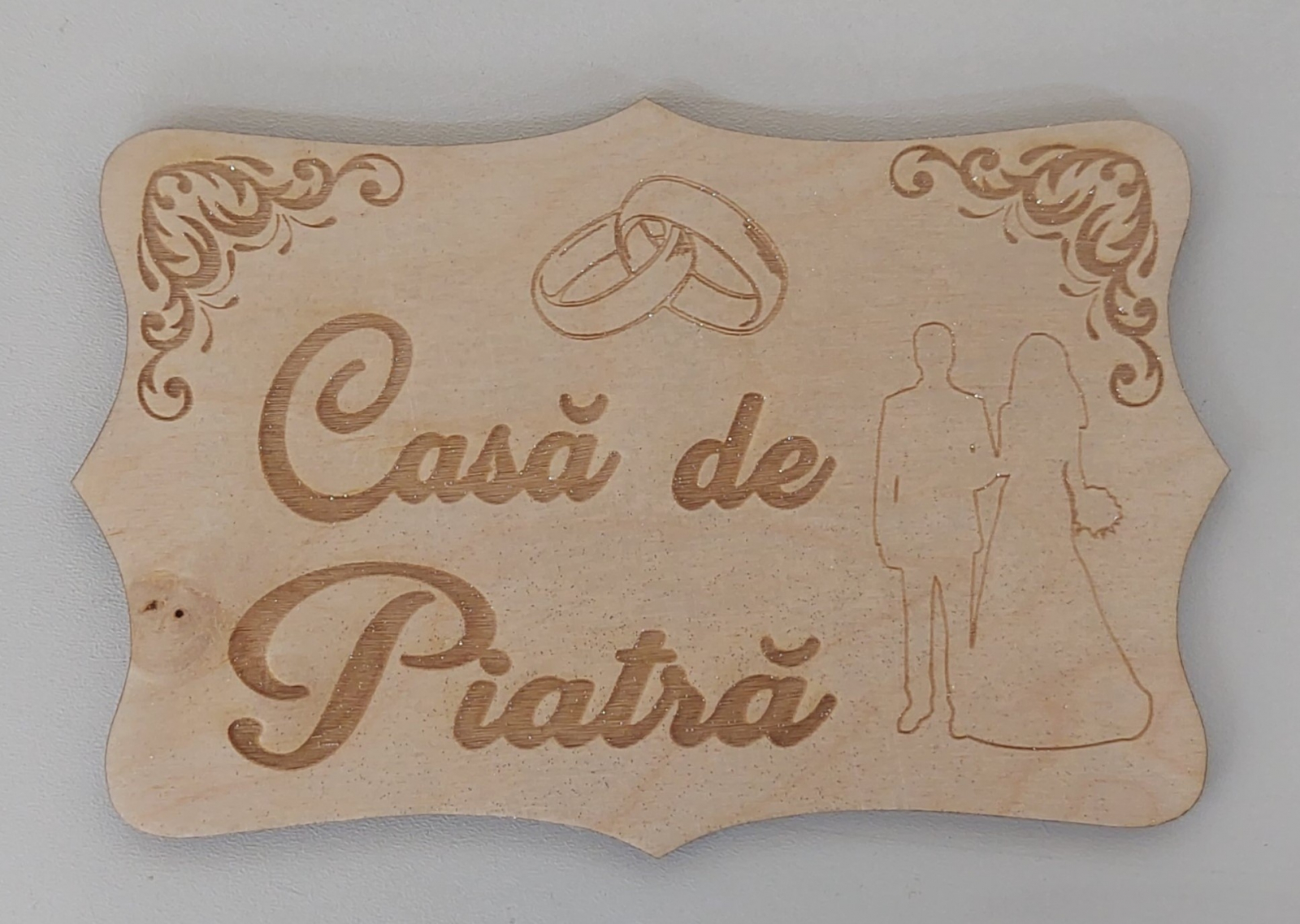 Decoraţiune pentru aranjamente florale din lem cu mesajul casa de piatră